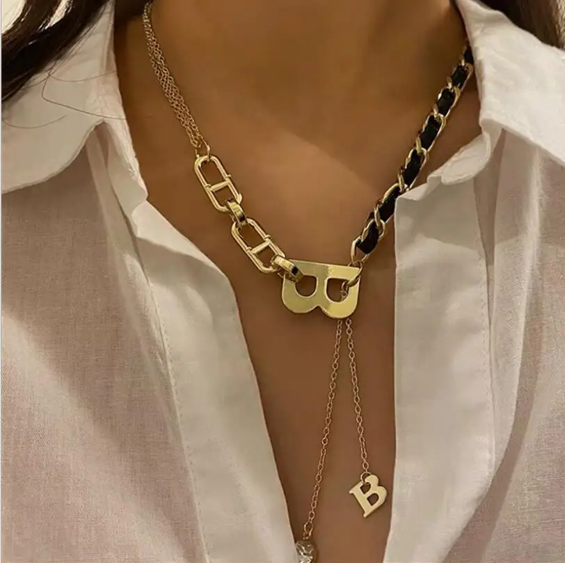 Модная подвеска золотого цвета с буквой B на удачу, чокеры, ожерелье для женщин, винтажная Свадебная бижутерия из нержавеющей стали