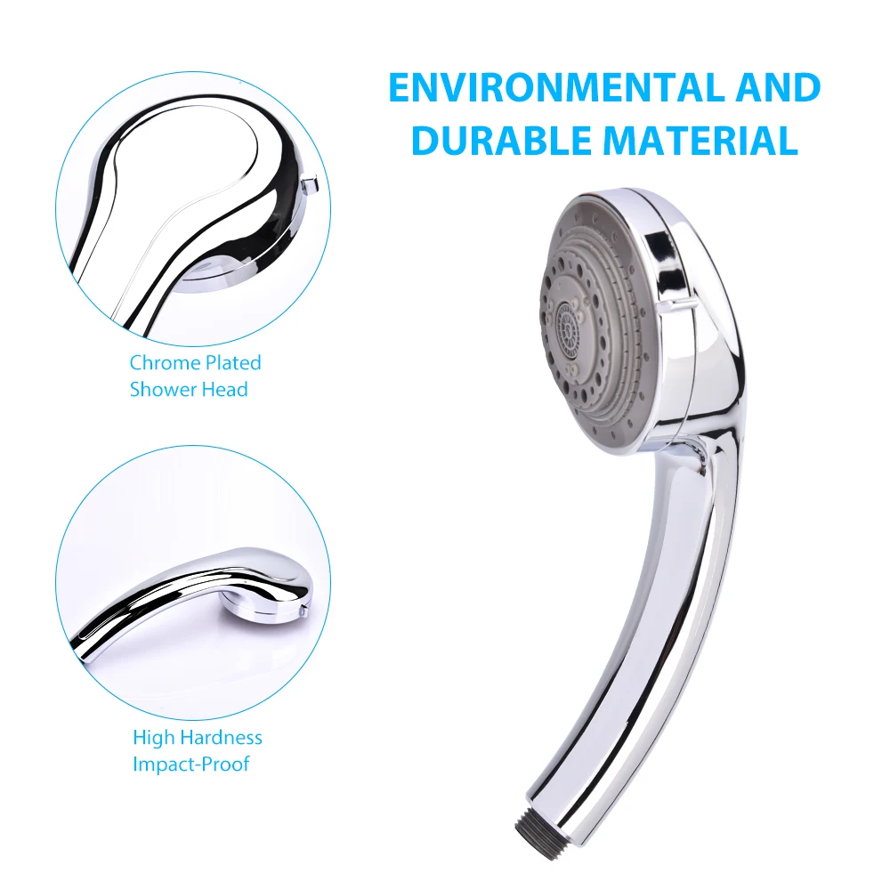 3. Высококачественный материал-Ручная насадка для душа изготовлена из высококачественного АБС-материала с хромом, что делает ее прочной и прочной, не токсичной или свинцовой. Не ржавеет и не выцветает.