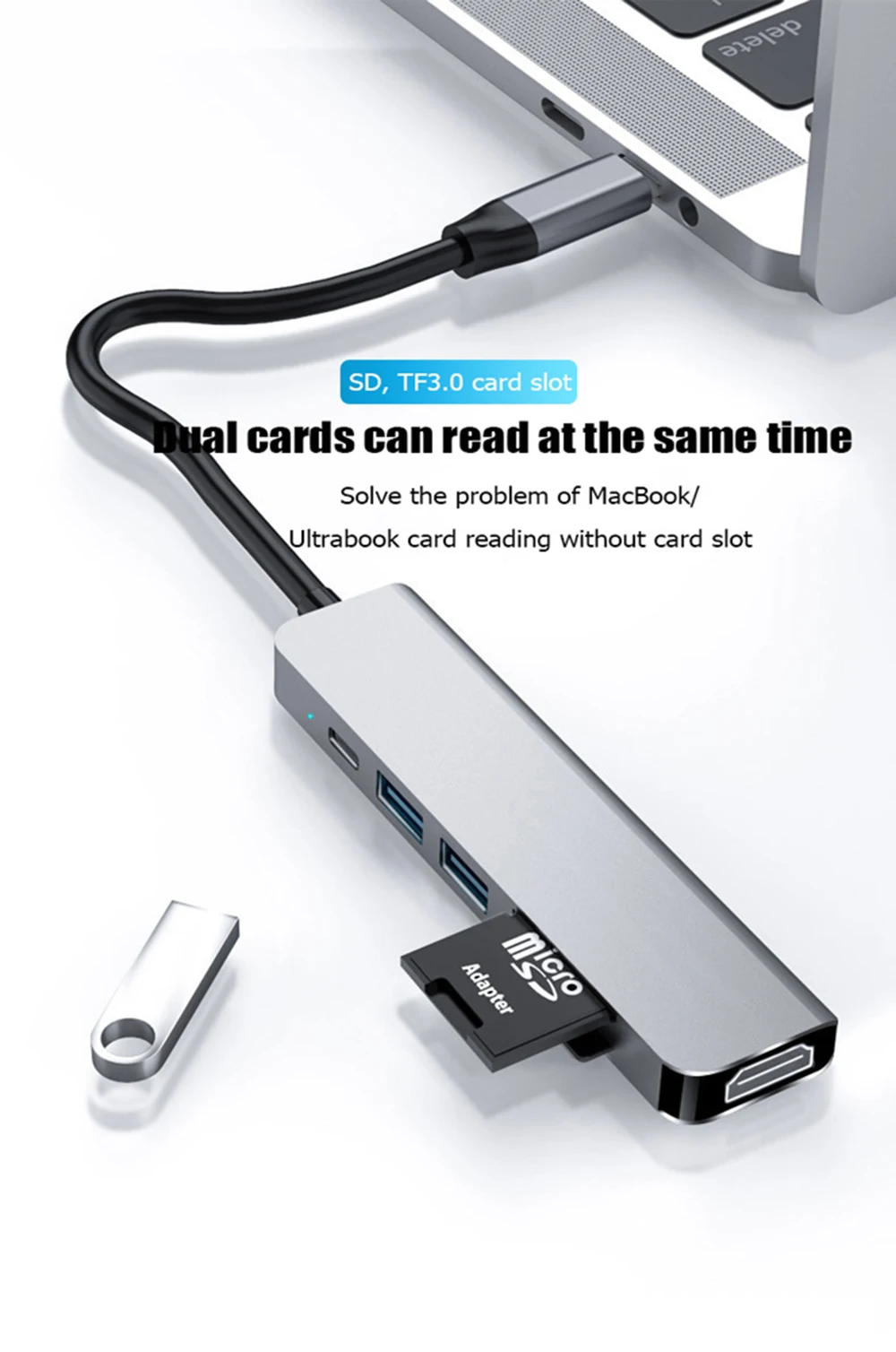 Usb-хаб C концентратор адаптер 6 в 1 USB C к USB 3,0 HDMI-совместимый док-станция для MacBook Pro для Nintendo Switch USB-C разветвитель типа C 3,0
