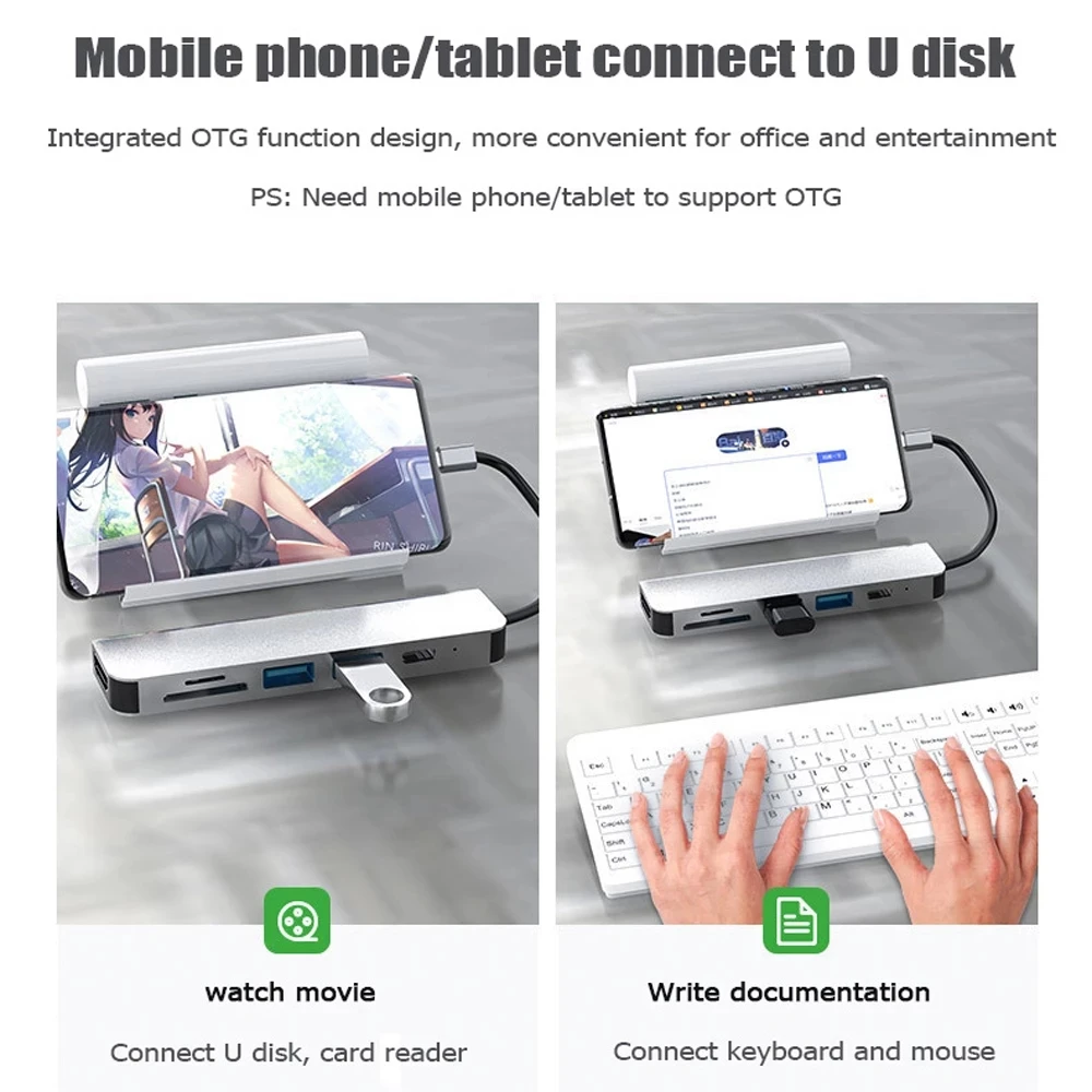 Usb-хаб C HUB адаптер 6 в 1 взаимный обмен данными между компьютером и периферийными устройствами C до USB 3,0, совместимому с HDMI док-станция для MacBook Pro для Nintendo Switch USB-C Тип C 3,0 сплиттер