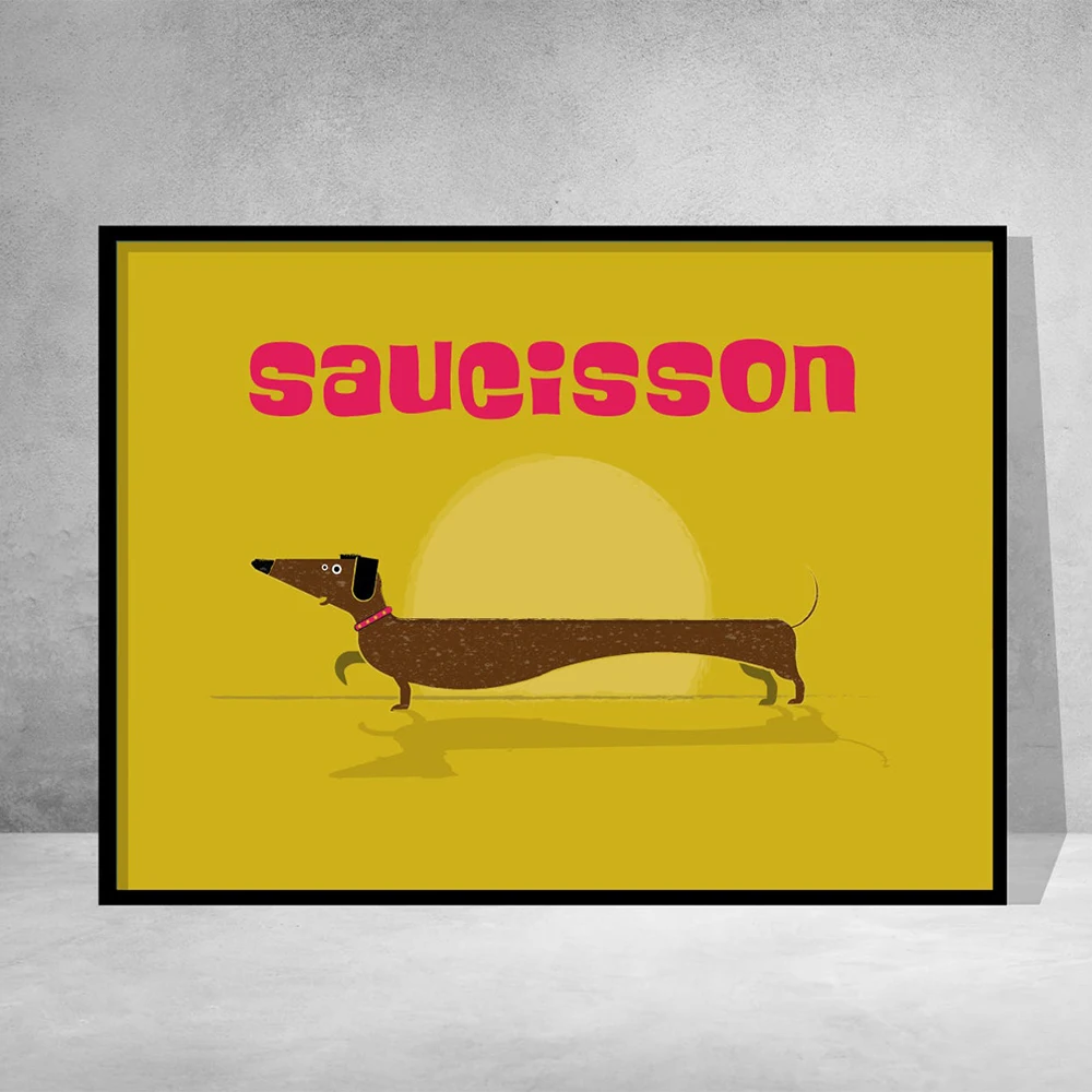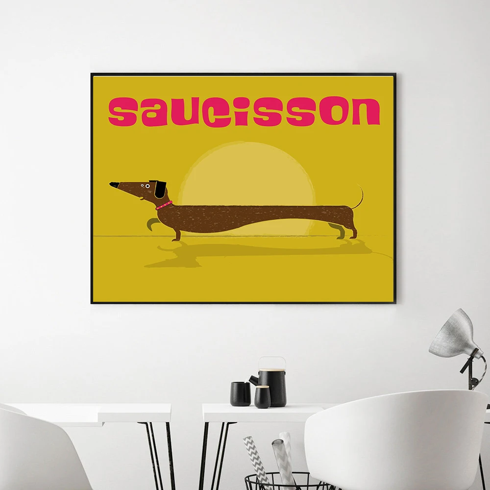 Холст с изображением желтой сосиски и постера в стиле ретро, иллюстрация среднего века, картины с изображениями животных Dachsund для домашнего декора