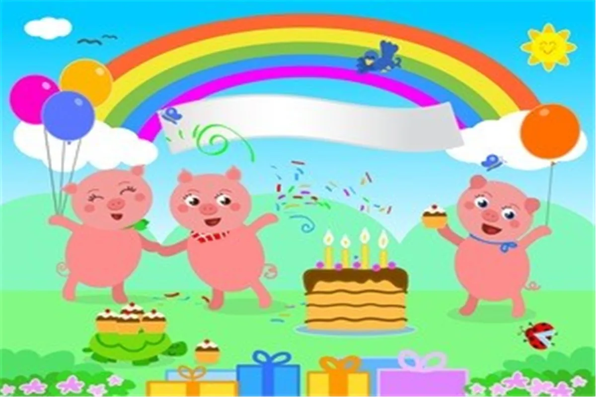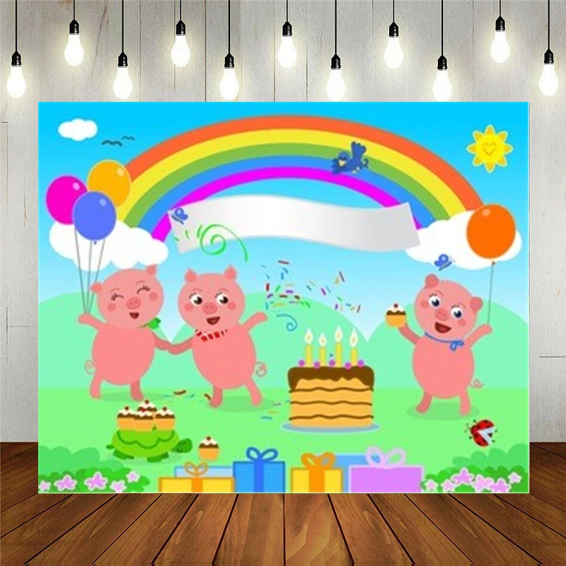 Реквизит для фотостудии Nitree Виниловый фон для фотосъемки детское украшение на день рождения Мультяшные три маленькие свинки можно добавить текст