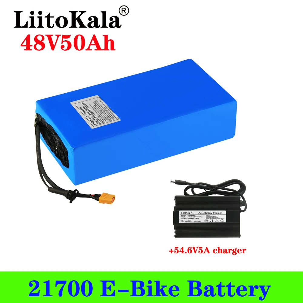 Литиевый аккумулятор LiitoKala для электрического велосипеда, 48 В, 50 Ач, 21700 13S10P, батарея BMS для электровелосипеда 1000 Вт, 1500 Вт, 2000 Вт, 2500 Вт, 20A, 30A, 50A