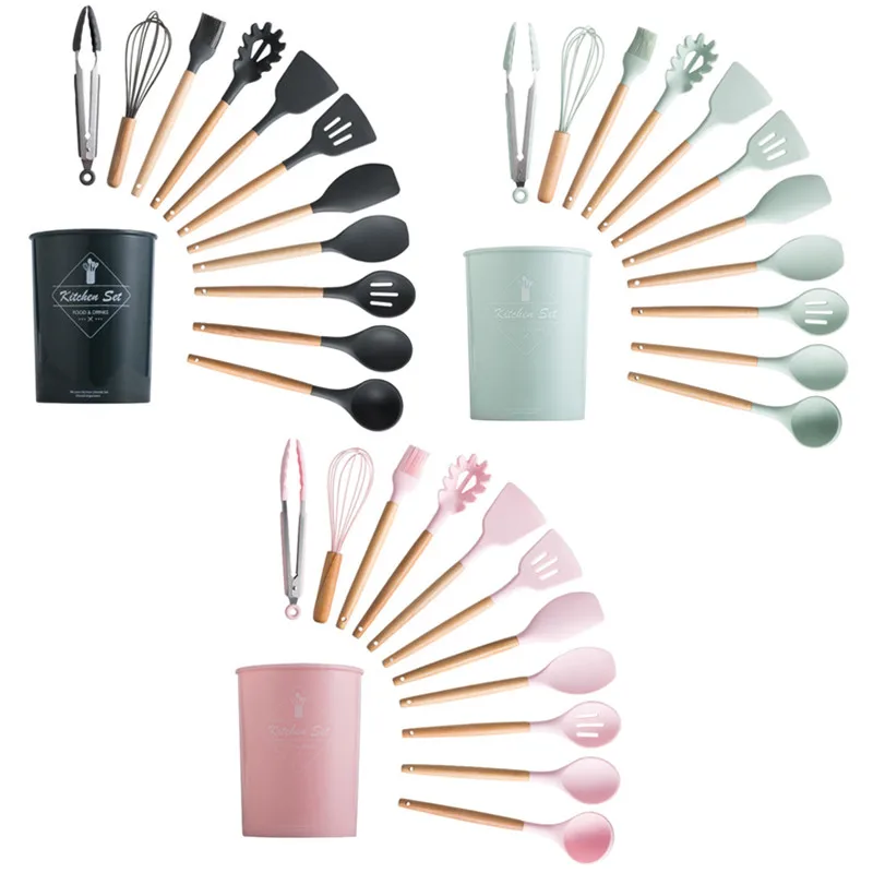 Набор силиконовых кухонных принадлежностей, комплект из 911 антипригарных предметов, лопатка с деревянной ручкой и ящиком для хранения, кухонная техника