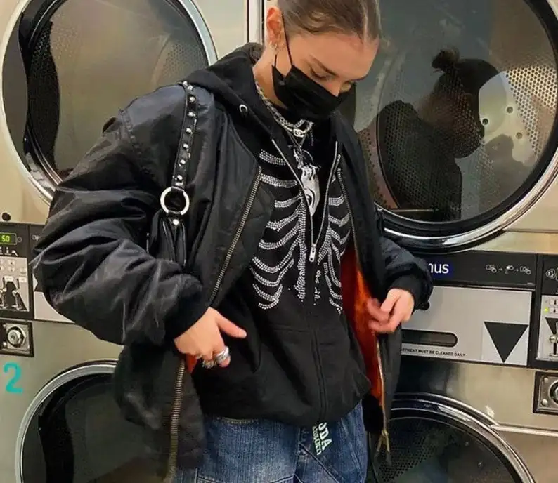 Готическая Черная Стразы панк с капюшоном Женская Фея гранж темная Академия Куртка Пальто Harajuku молния свитшоты эмо альт одежда