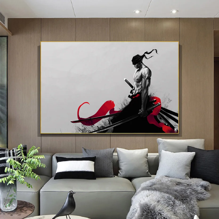 Японский творческий постер укиё-е Самурай Тай чи дракон Холст Живоп...