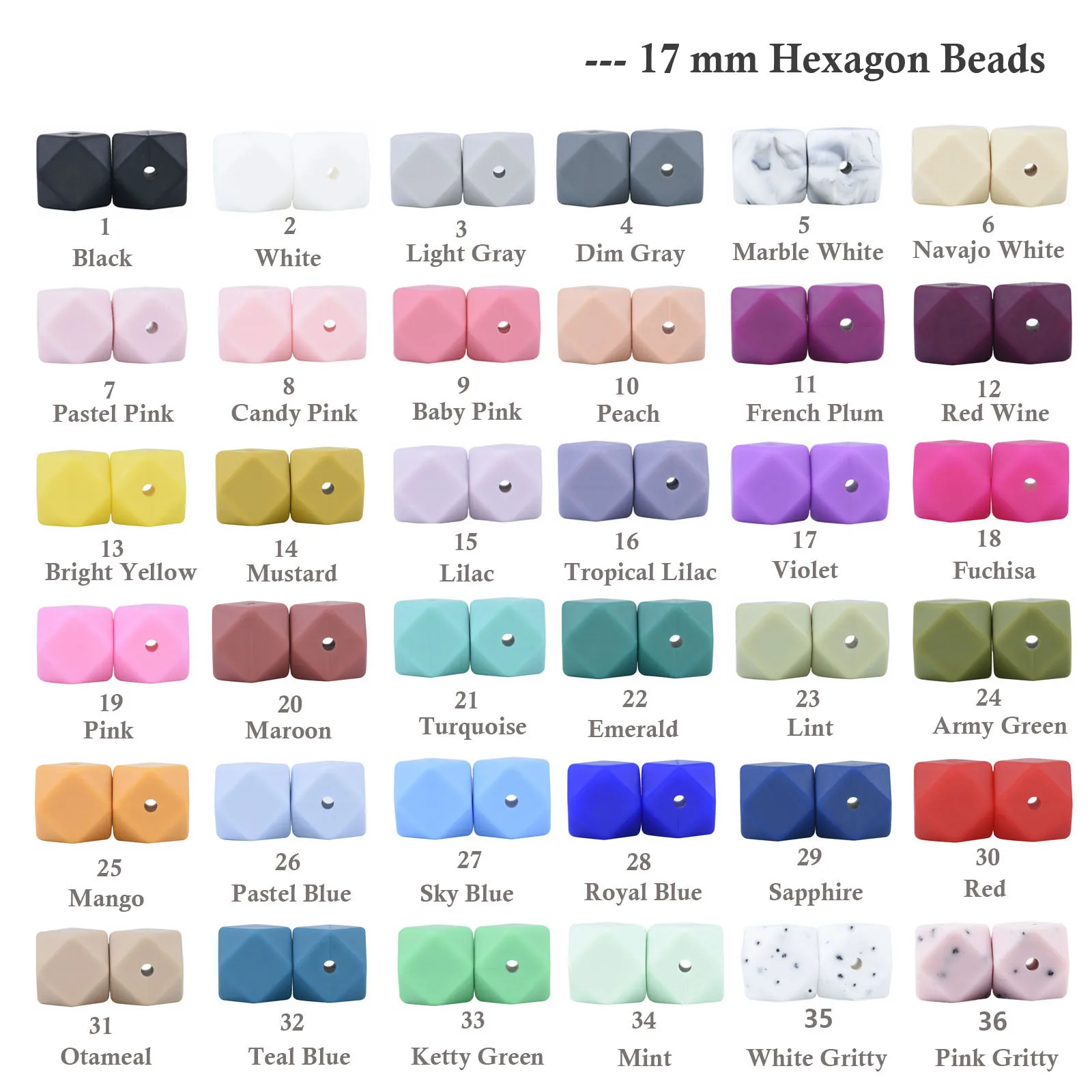 Шестигранные силиконовые бусины 17 мм, 100200 шт., для детской цепочки сделай сам для пустышки, без бисфенола А, аксессуары для прорезывания зубов