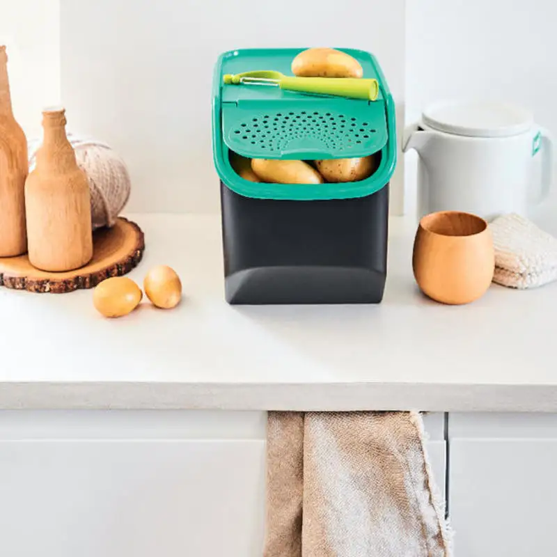 ** Макси-погреб Tupperware с луком, картофелем, грецким орехом и фейнджикларом, идеально подходит для хранения или хранения сахара, чтобы ваша кухня оставалась чистой и аккуратной.