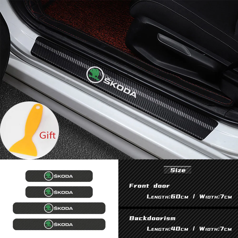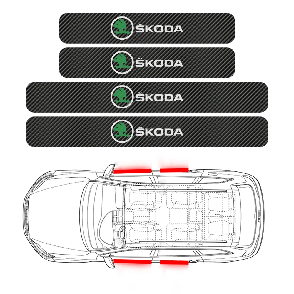 Накладки на пороги автомобиля, 4 шт., из углеродного волокна, для Skoda Octavia, Kodiaq, наклейка на порог