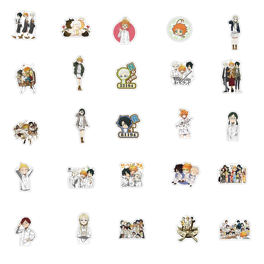 Наклейки в стиле аниме The Promise Neverland, 50 шт., для самостоятельной сборки, канцелярские принадлежности для PS5, багаж, велосипедный шлем, наклейки для детей, Мультяшные наклейки
