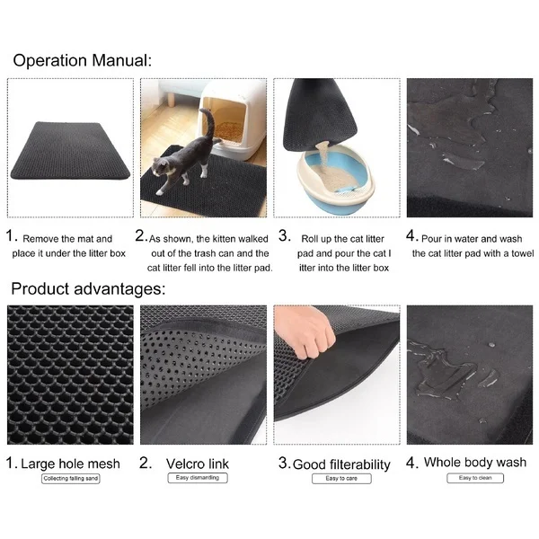 Тип изделия: коврик для кошачьих туалетовМатериал: ЭВАЦвет: серыйХарактеристики: прочныйЦелевая аудитория: кошкиРазмер (XS):30 см * 30 смРазмер (ы):40 см/15,75 "* 50 см/19,69"Размер (М):46 см/18,11 "* 60 см/23,62"Размер (Д):55 см/21,65 "* 75 см/30,62"1, ультра-светильник, легко носить с собой, износостойкий, нескользящий, легко моется;2, супер гладкая поверхность, не будет преследовать кошачьи лапы, как другие коврики3, двойное разделение клея, первый слой: поверхность поверхности с нескользящей поверхностью износа, второй слой: плоский TPE Резиновый пеноматериал, нижняя паза противоскользящая конструкция; высокоэластичный Материал EVA коврик для домашних животных, материал верхней части отверстия, кошачий помет может легко пройти, Нижний слой из водонепроницаемого материала, кошачий подстилка, моча и другие загрязнения можно собрать в этом слое.Ловушки мусор от кошек лапы и помет из коробкиМатериал EVA, супер светильник, легко носить с собойДля действительно грязных кошек обязательно используйте подушечки для щенков, так как они замачивают чрезмерную мочуСупер гладкая поверхность, не мешает кошачьим лапам, как и другим матамЛегкая очистка под раковиной, насадкой для душа или стряхните Посылка включает в себя:1 х коврик для кошачьих туалетов, чистый коврик для кошачьих туалетов с водонепроницаемым слоем