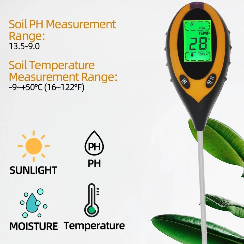 Цифровой 4 в 1 ph-тестер для почвы, светильник для измерения влажности воды, солнечный светильник, измерительный прибор для садовых растений, инструменты для измерения уровня кислотности и влажности