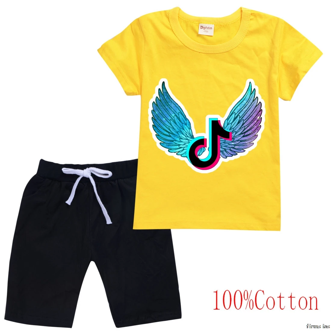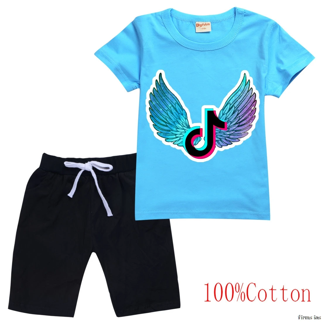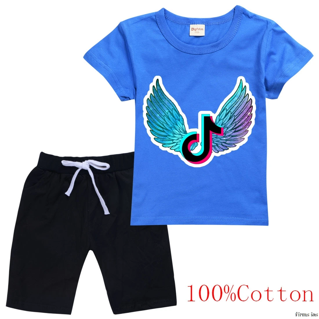 Комплект одежды Tik Tok для мальчиков, Детская летняя одежда для малышей, детский спортивный костюм для девочек, собственный дизайн, фото логотип на день рождения