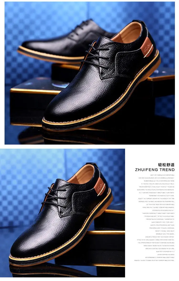 Мужские повседневные туфли из натуральной кожи; Удобные деловые туф...