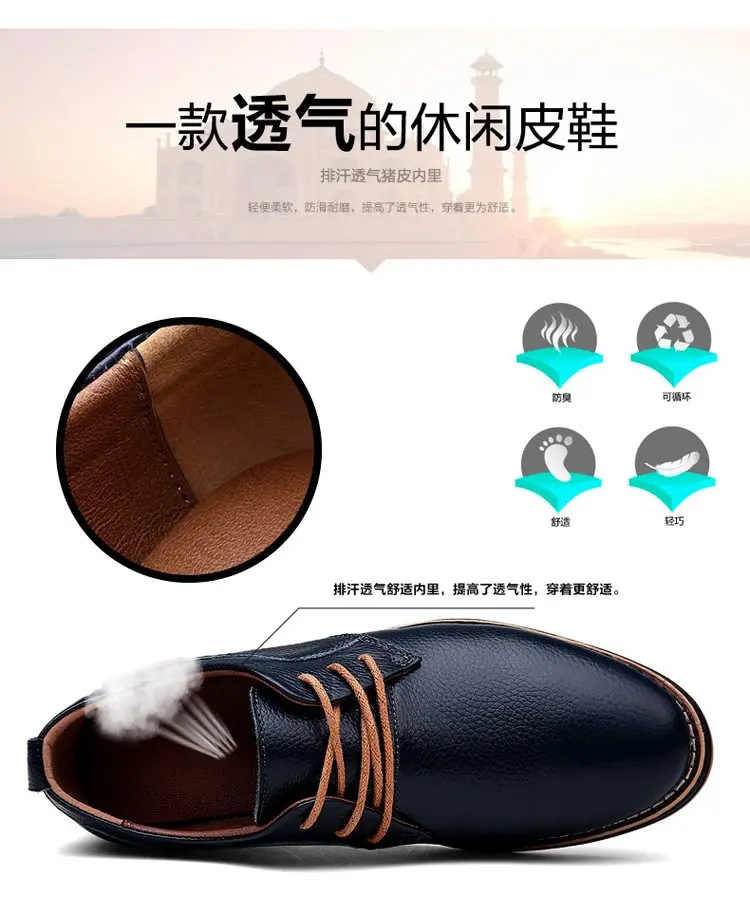 Повседневная мужская обувь из натуральной кожи для взрослых, Высоко...