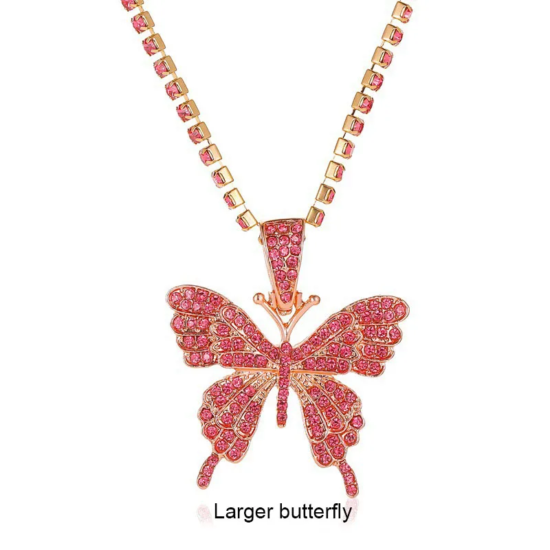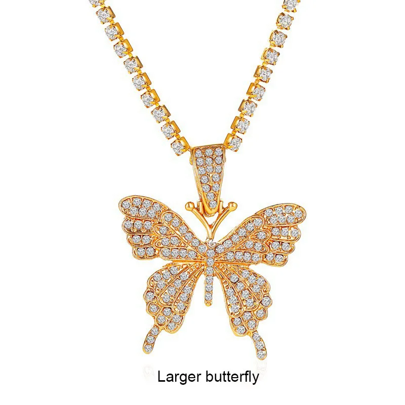 Кубинская Бабочка ожерелье стразы бабочка кулон ожерелье Хип-хоп ак...