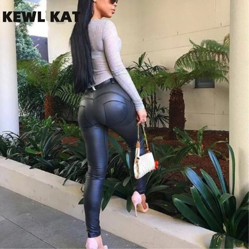 Брюки - карандаш женские из ПУ кожи , с высокой талией и эффектом пуш-ап кожанные штаны женские