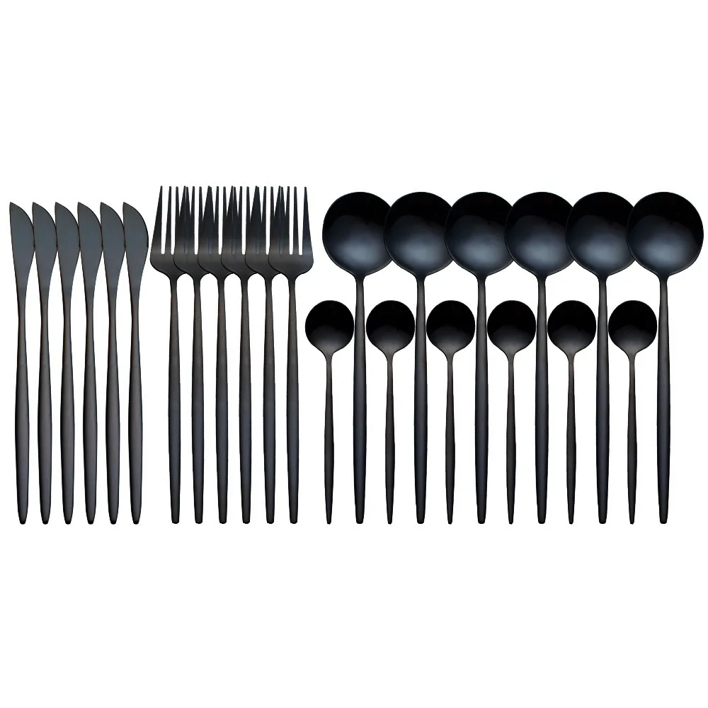 Набор столовых приборов из нержавеющей стали, 24 шт.компл., Черное ...