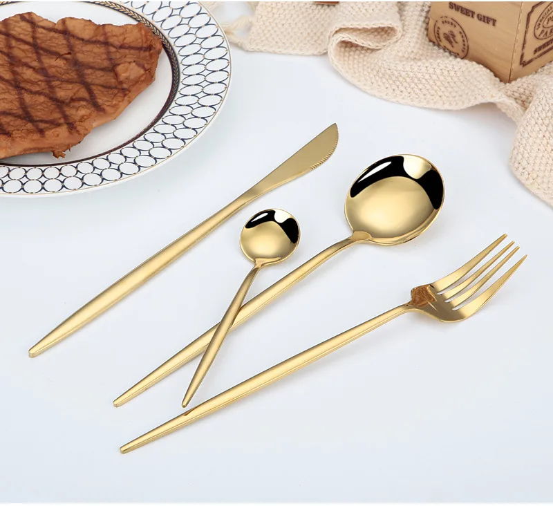 Набор столовых приборов из нержавеющей стали, позолоченные столовые...