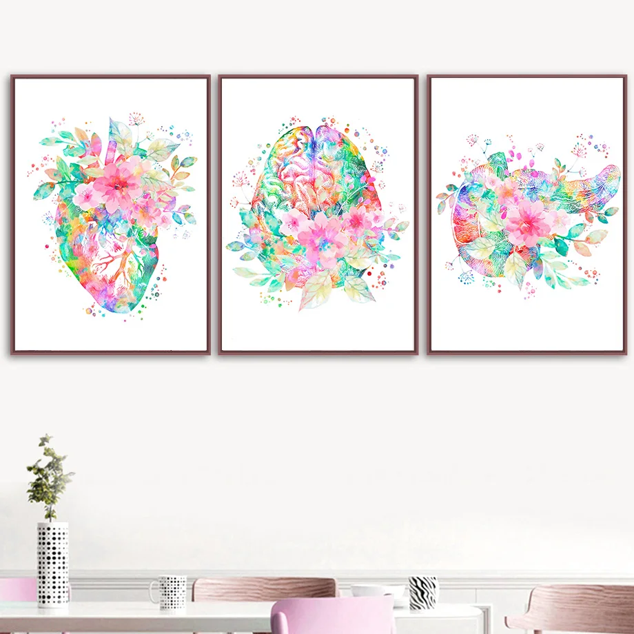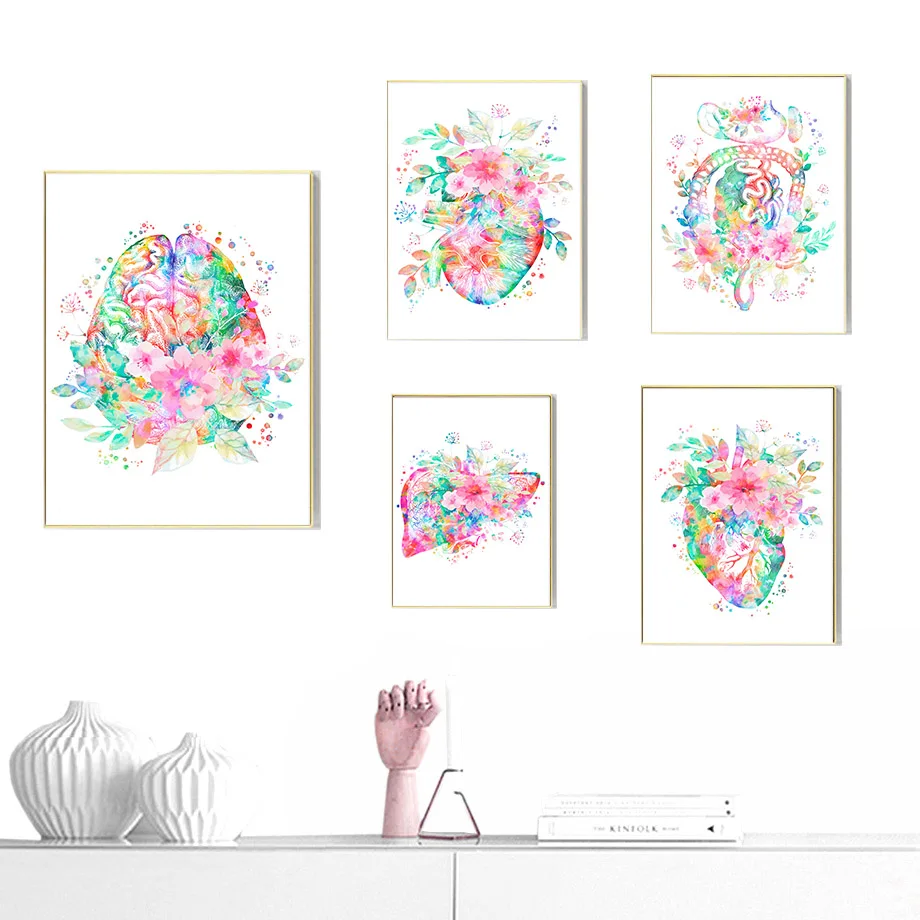 Настенная Картина на холсте красочная Анатомия мозг сердце легкие печень скандинавские плакаты и принты настенные картины для врача офиса Декор