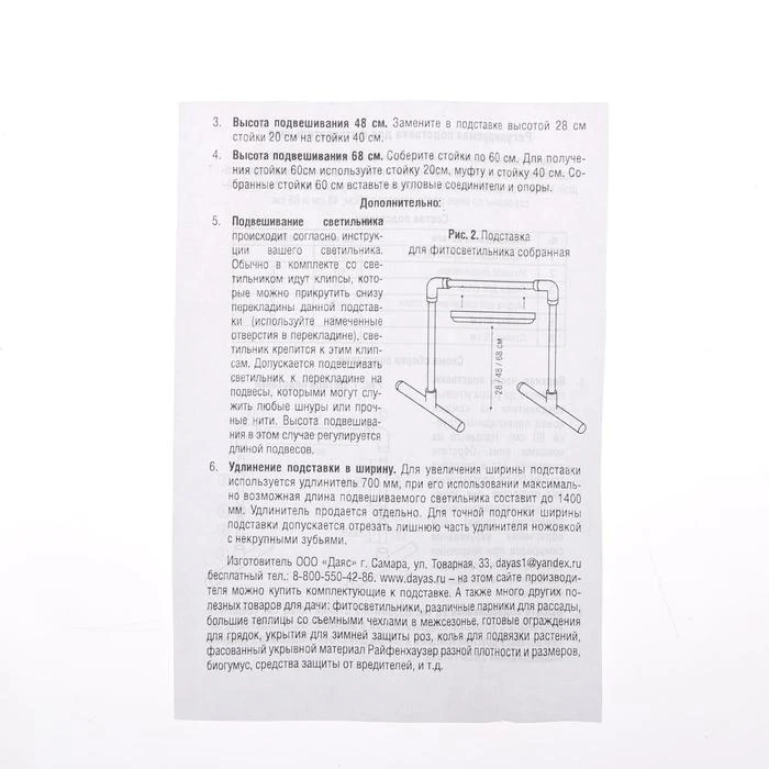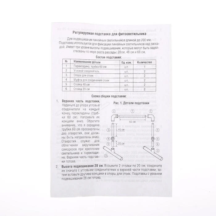 Подставка для фитолампы, 84 37 70 см, регулируемая по высоте, пластик