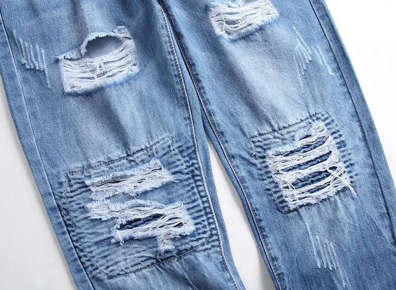 Джинсы мужские рваные в ковбойском стиле, модные светильник нные брюки из денима светло-голубого цвета с потертостями, Повседневная Уличная одежда, JB924