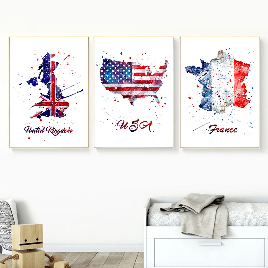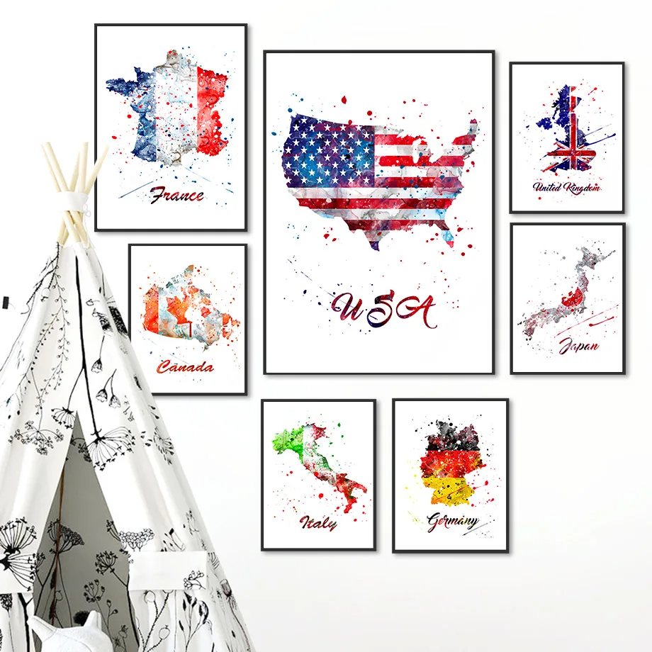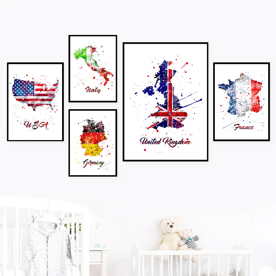 Настенная живопись на холсте, цветная карта мира, знаменитые города, скандинавские плакаты и принты, Мультяшные настенные картины для украшения гостиной