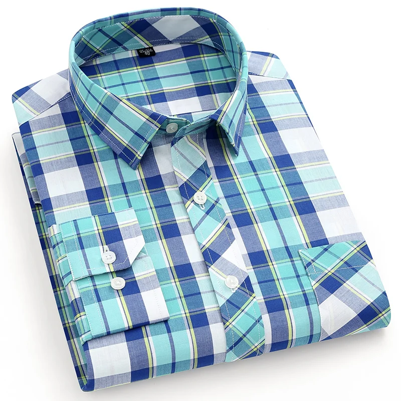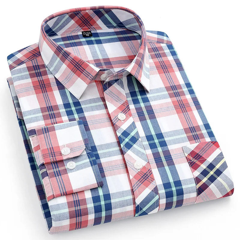 2021 Модные 100% хлопковые клетчатые мужские рубашки с длинным рукавом Повседневная Удобная мужская одежда