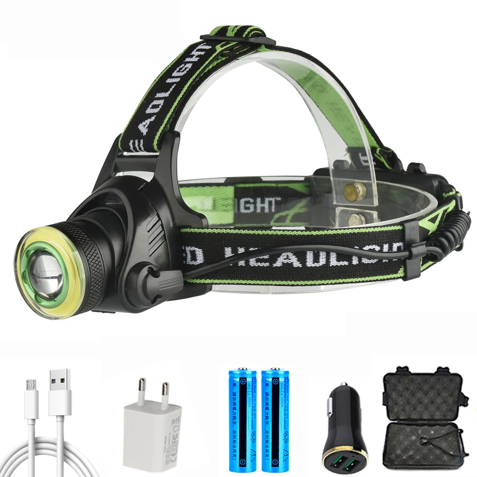 Налобный фонарь, светодиодный, D2 T6 + COB, водонепроницаемый, с аккумулятором 18650