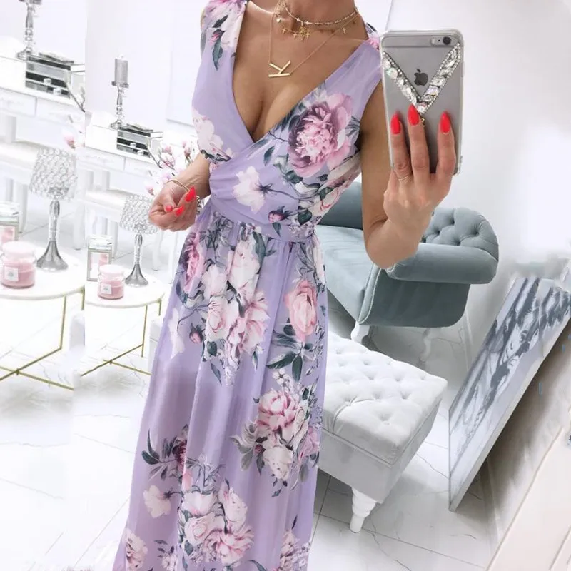 Женское винтажное платье макси без рукавов, длинное пляжное платье ...