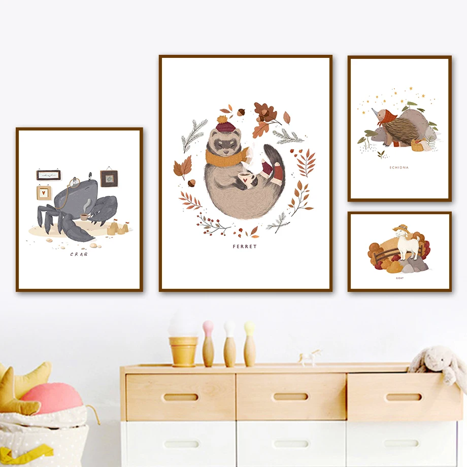 Настенная Картина на холсте с изображением пчелы краба хорька козы эхидны скандинавские постеры и принты настенные картины для детской комнаты декор для детской комнаты
