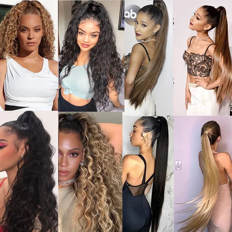 MANWEI длинные кудри Прямой зажим хвост искусственные волосы конски...