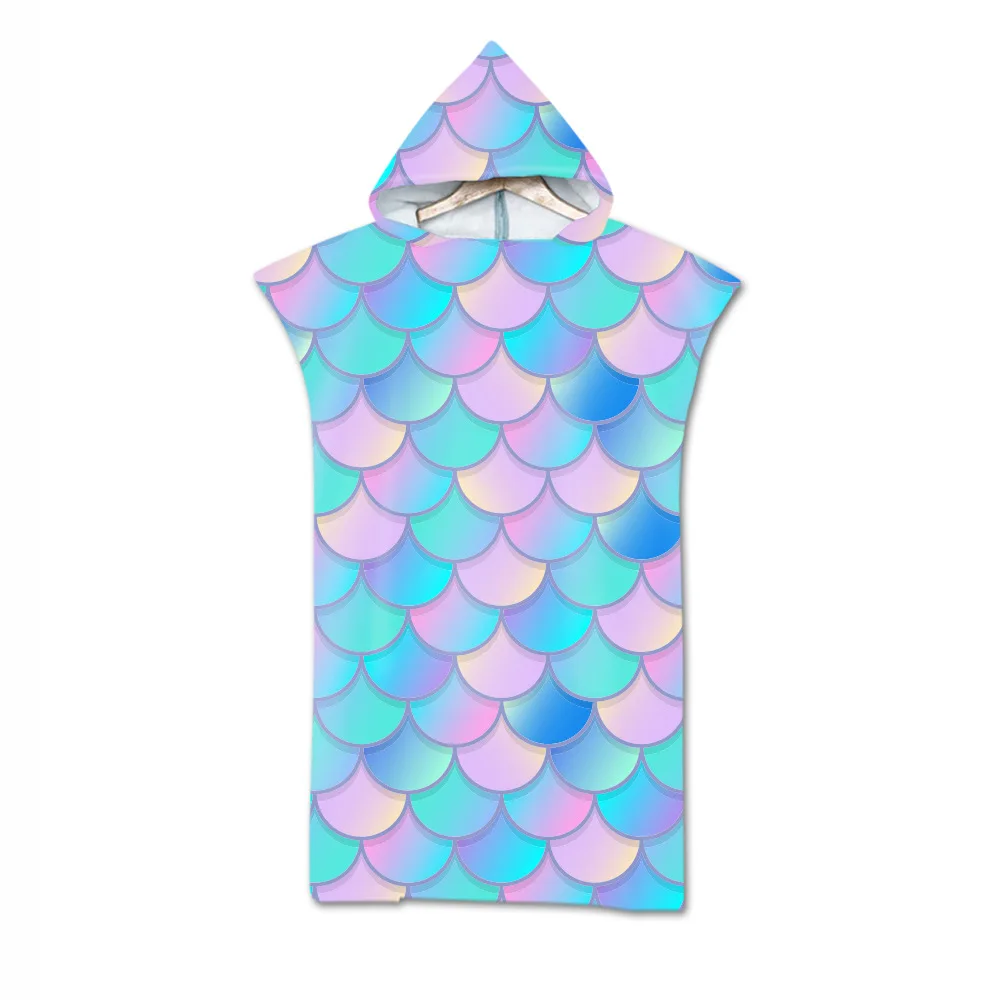 Халат с принтом рыбьей чешуи из микрофибры, банное полотенце, пончо...