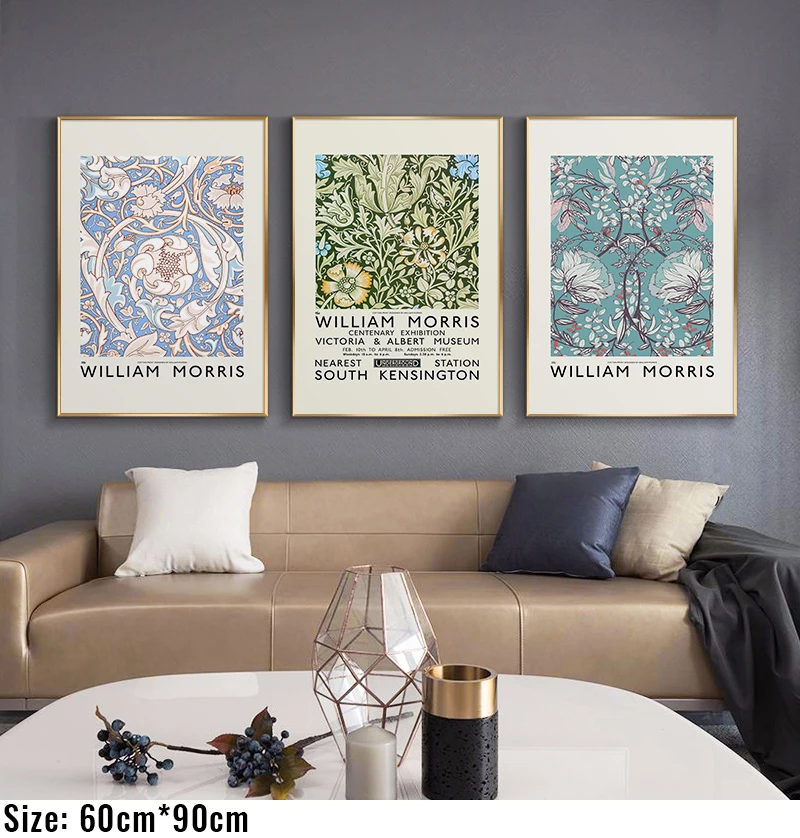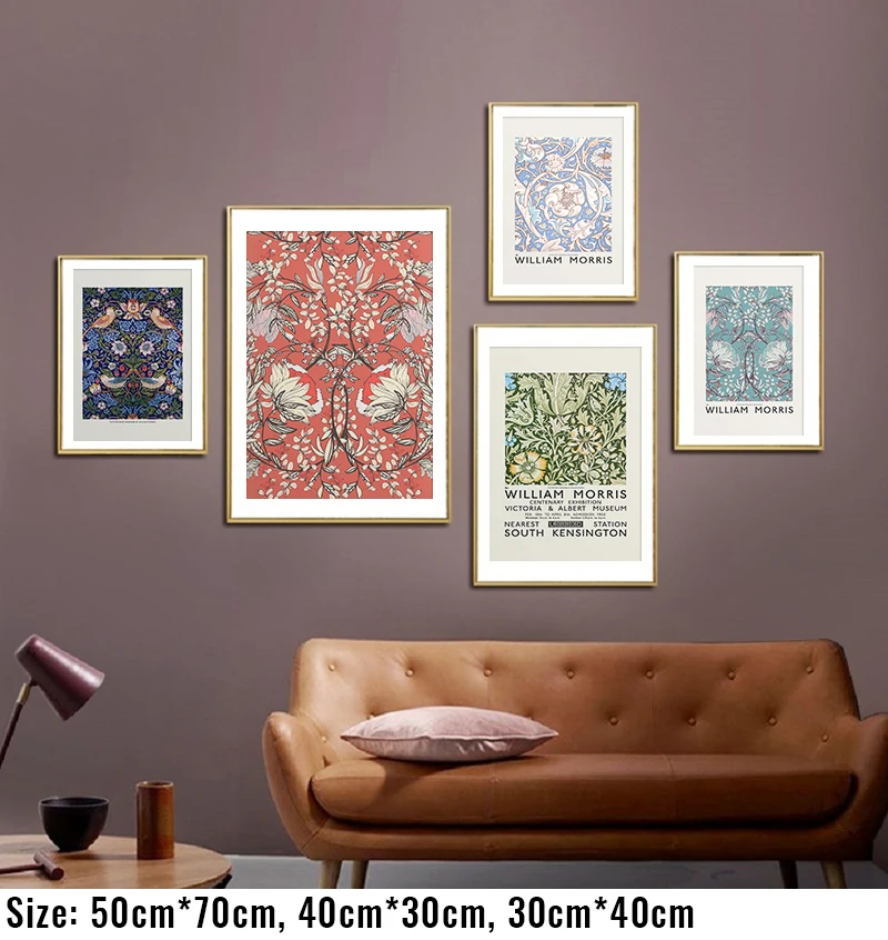 Постер для выставки в стиле музея Уильяма Морриса, винтажный цветочный Рисунок с листьями, холст, принт с клубникой, картина для украшения дома