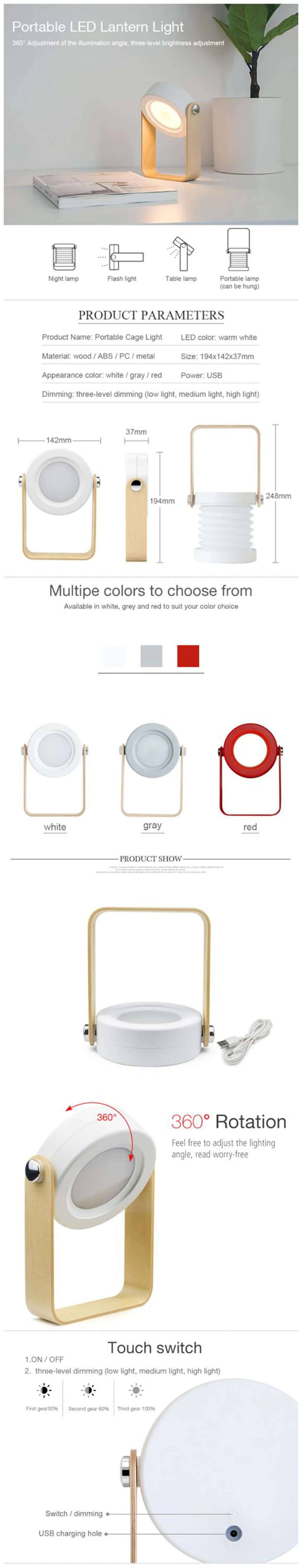 Креативный деревянный светодиодный ночник с USB-зарядкой, лампа для чтения, портативный фонарь, лампа, телескопическая складная Светодиодная настольная лампа для комнаты