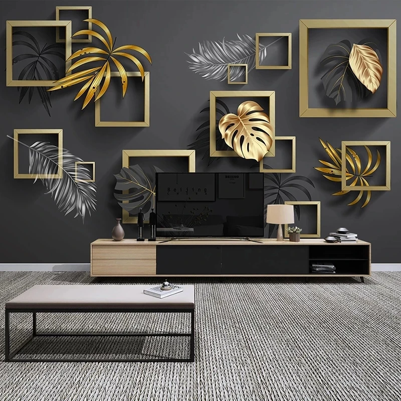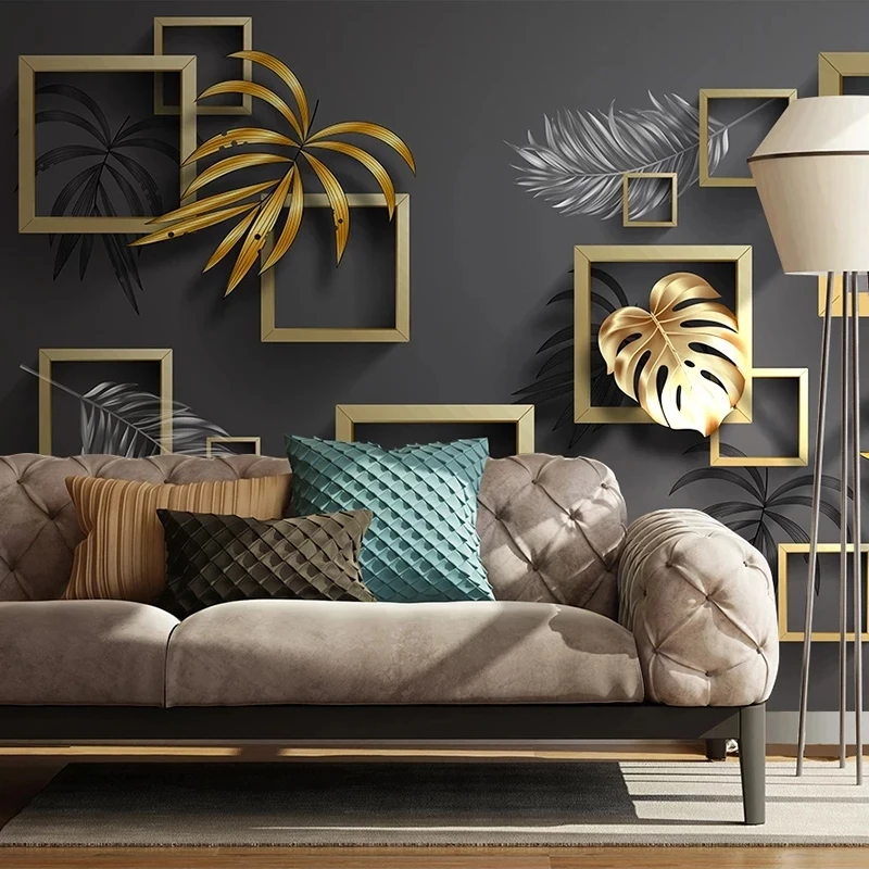 Настенные 3D-обои на заказ, роскошное художественное украшение на стену, с золотыми геометрическими листьями, для гостиной, дивана, фона для телевизора, домашний декор, самоклеящиеся обои