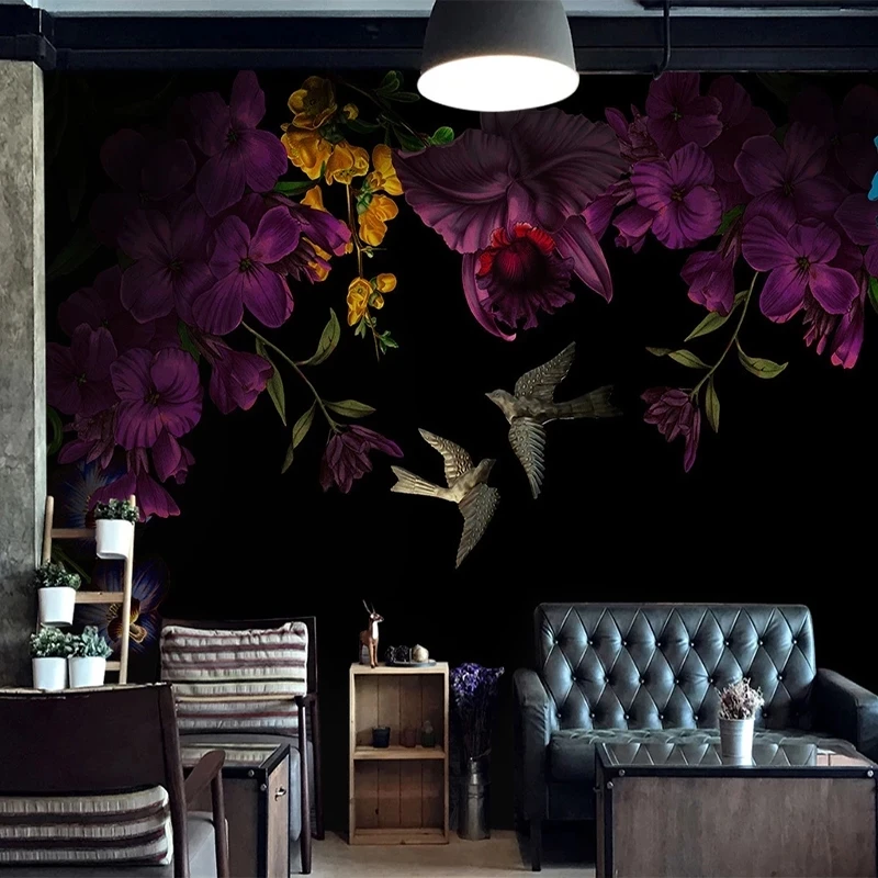 Фотообои на холсте, самоклеящиеся, ручная роспись, пионы, цветы, черный фон для гостиной, спальни