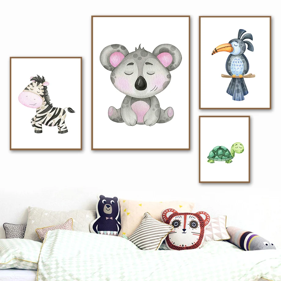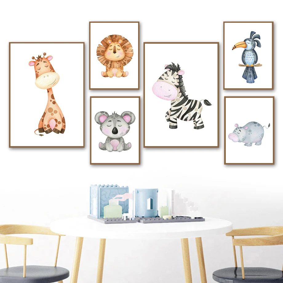 Зебра жираф крокодил Лев Сафари детская стена искусство холст карти...