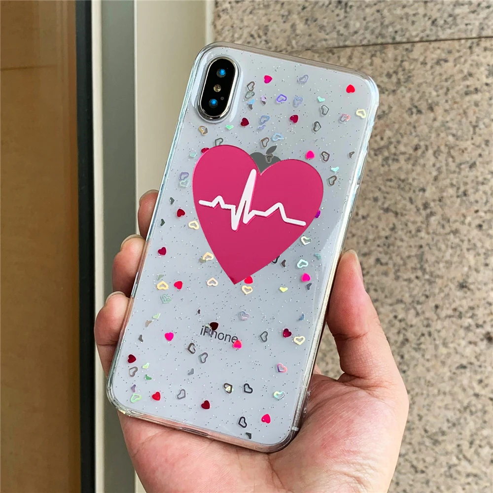 Прозрачный Тонкий силиконовый чехол с блестками в форме сердца для ...