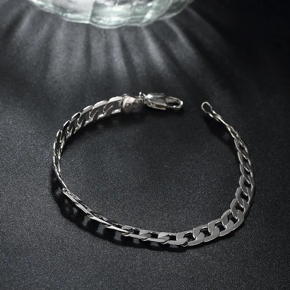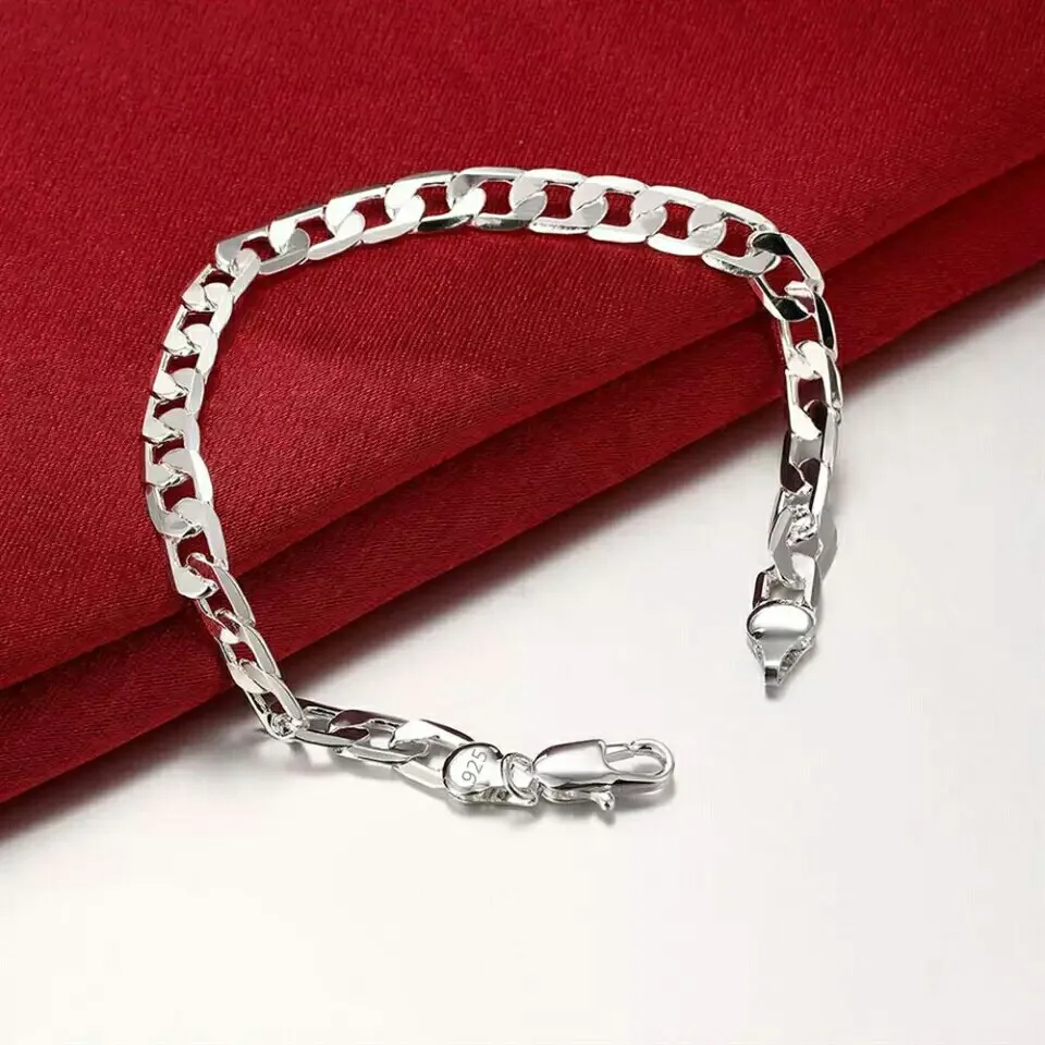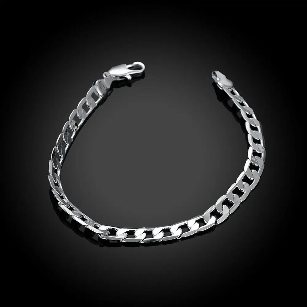 Браслеты из стерлингового серебра 925 пробы для женщин, плоская цепочка с боковыми дорожками 6 мм, хороший подарок на Рождество, Модная бижутерия