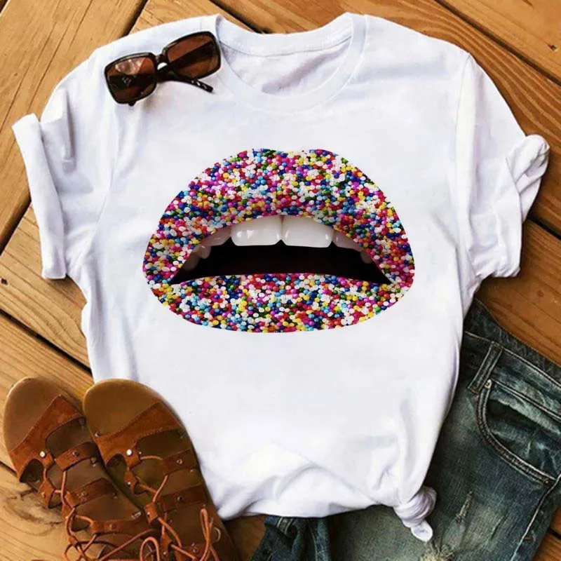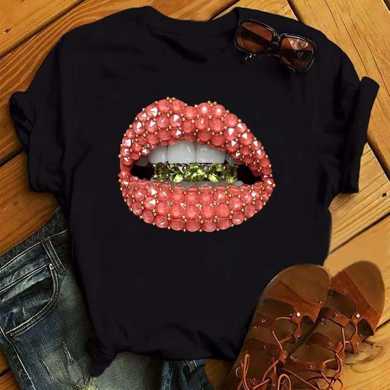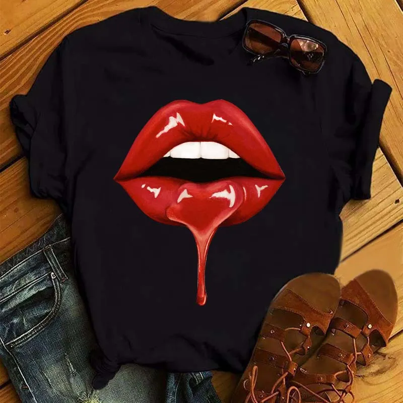 LINNA летние модные красные губы Футболка с принтом повседневные женские топы с коротким рукавом, короткие штаны, свободные размера плюс Забавные футболки для девочек черный рубашки для мальчиков