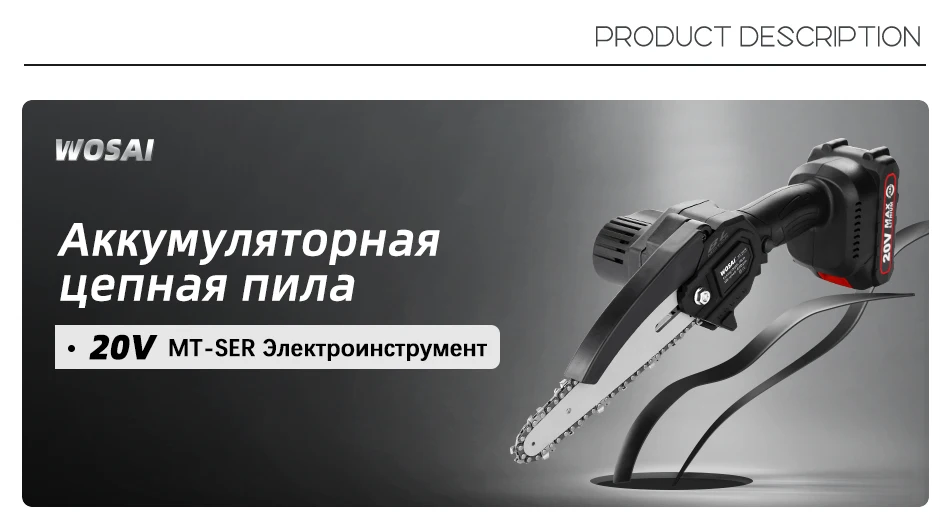 Пила цепная WOSAI, 20 в, 6 дюймов, портативная, электрическая