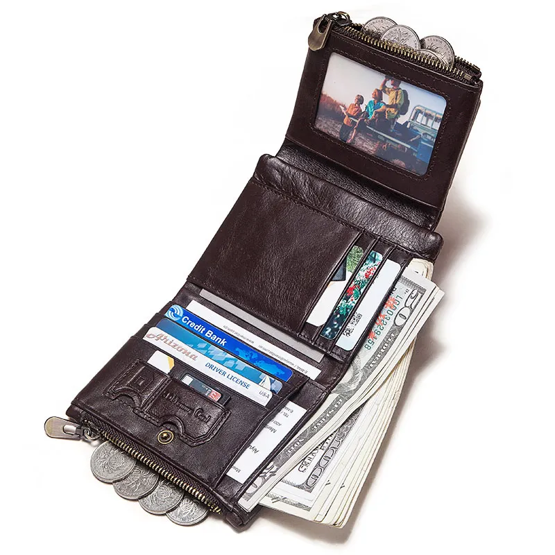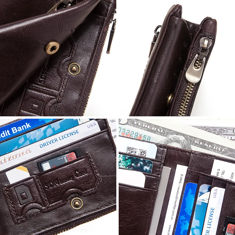Мужской кошелек из натуральной кожи, короткий бумажник для мелочи, ...