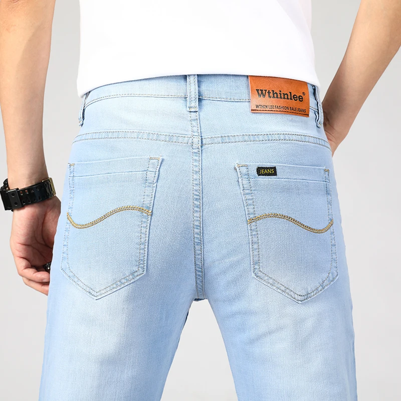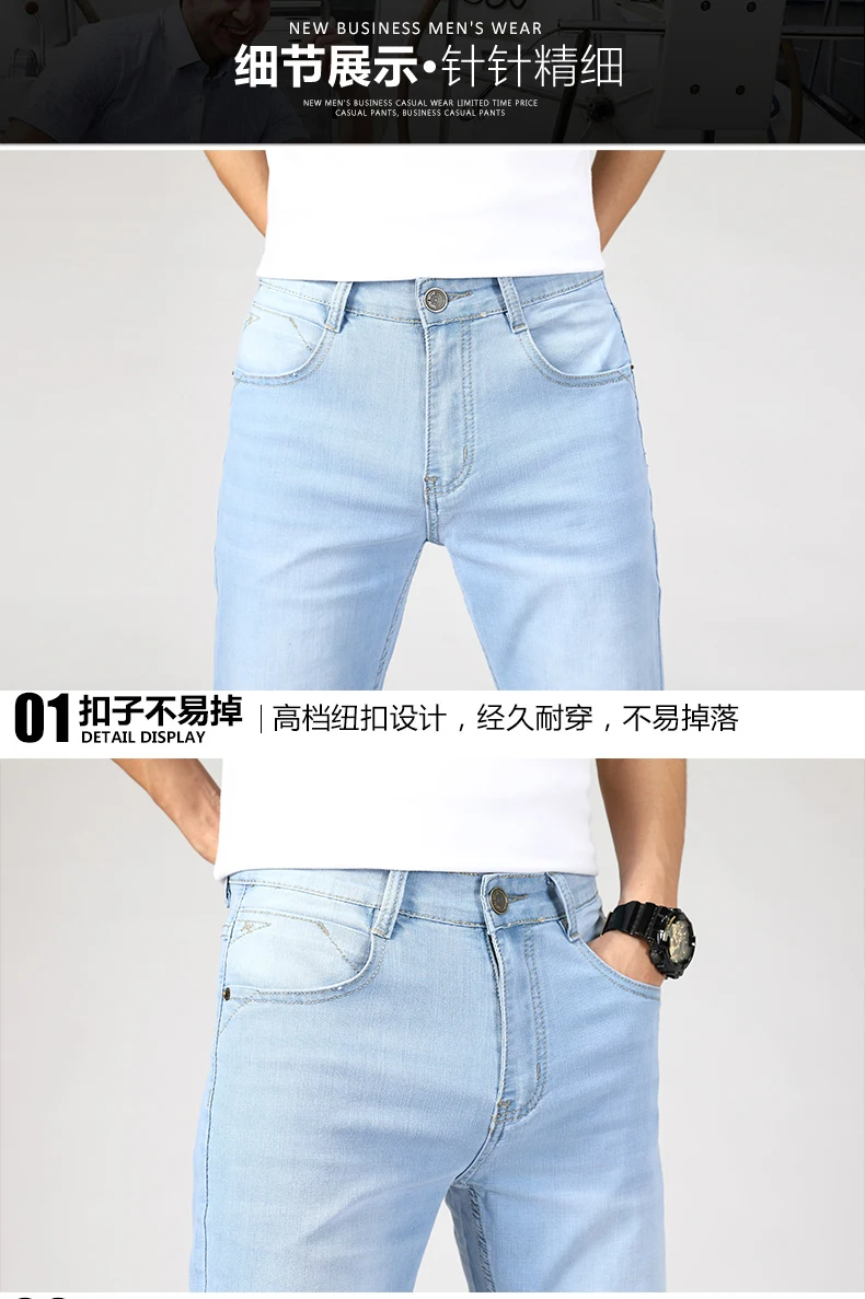 Джинсы мужские, тонкие, небесно-голубые, эластичные, повседневные, ...