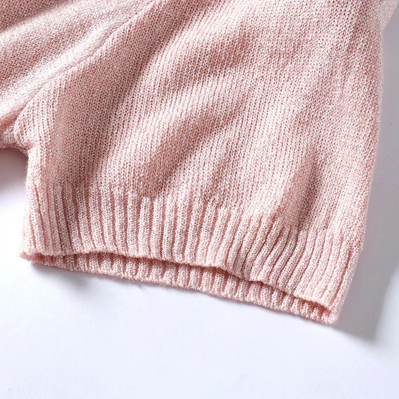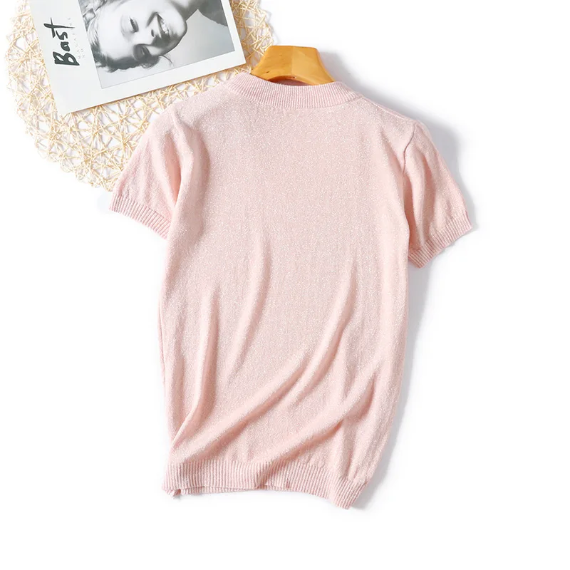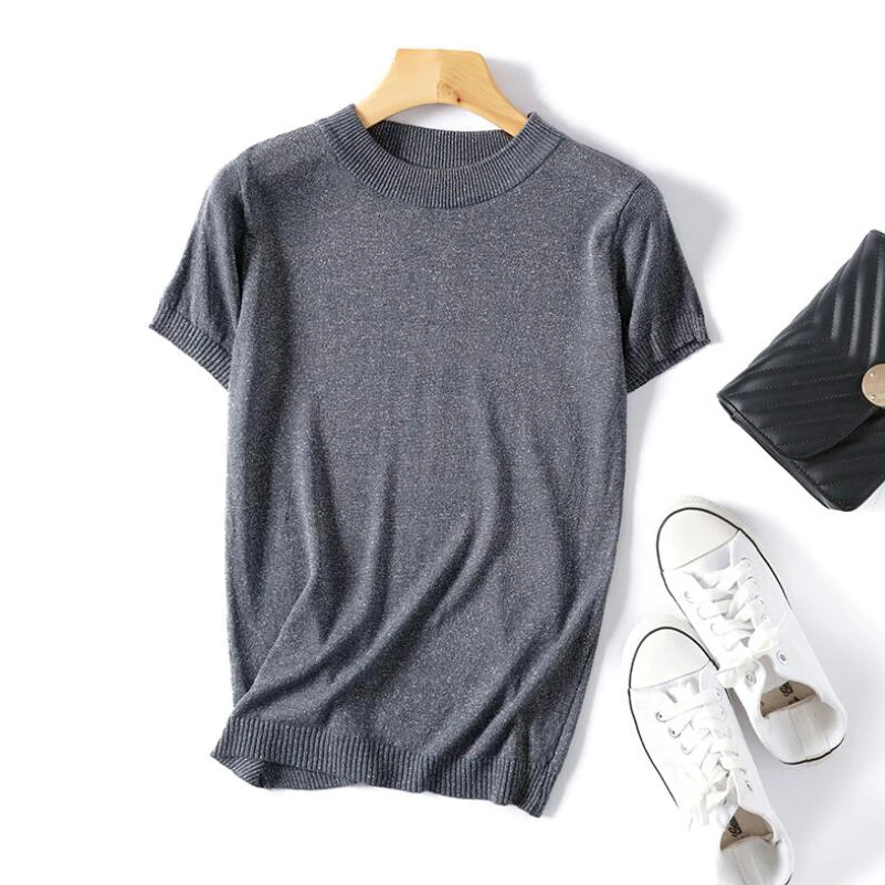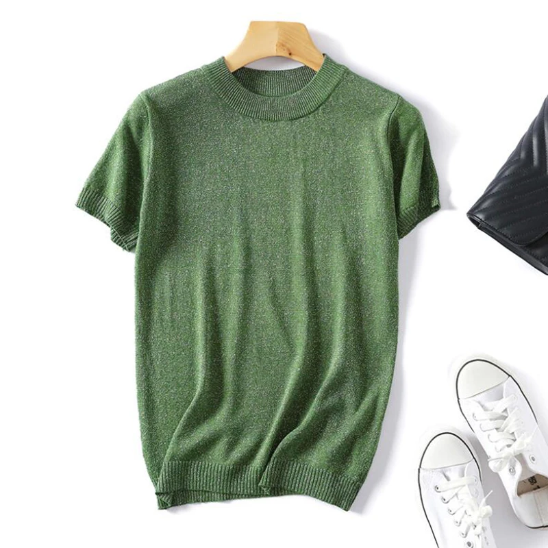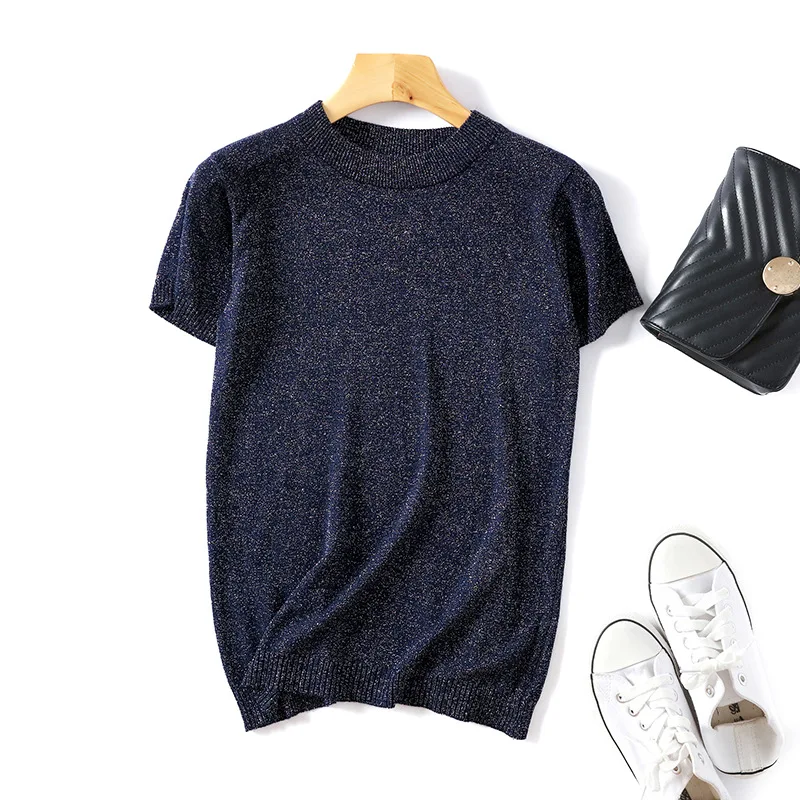 Свитер женский трикотажный с люрексом, короткий рукав, с круглым вырезом, в Корейском стиле, 2021