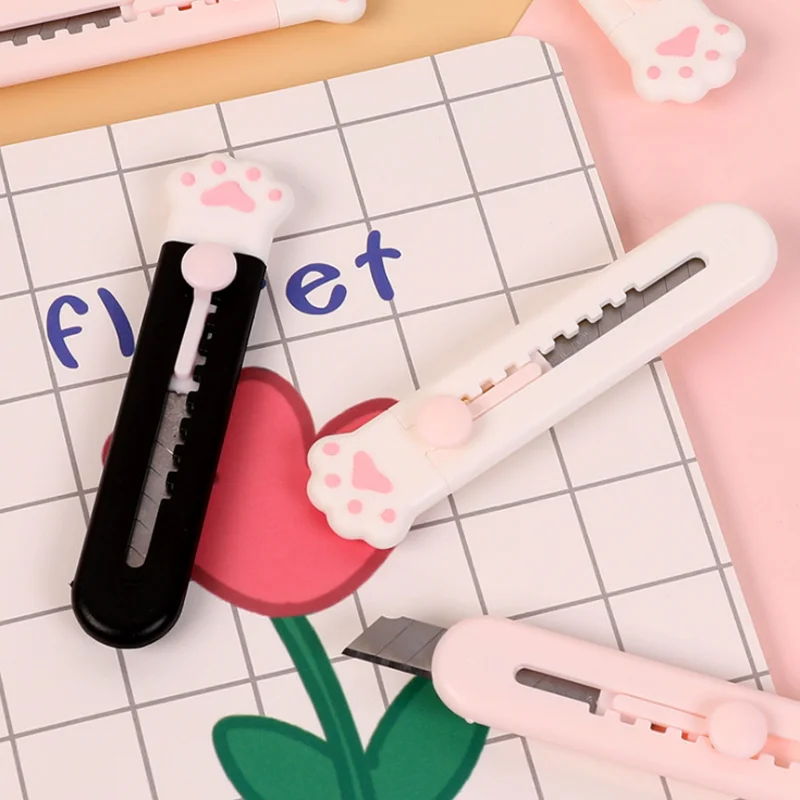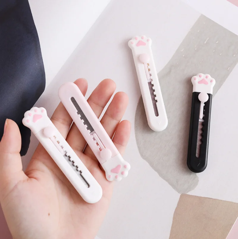 Универсальный нож Kawaii в виде розовой кошачьей лапы, металлический резак из нержавеющей стали, офисные и школьные принадлежности, канцелярские принадлежности в Корейском стиле, 1 шт.