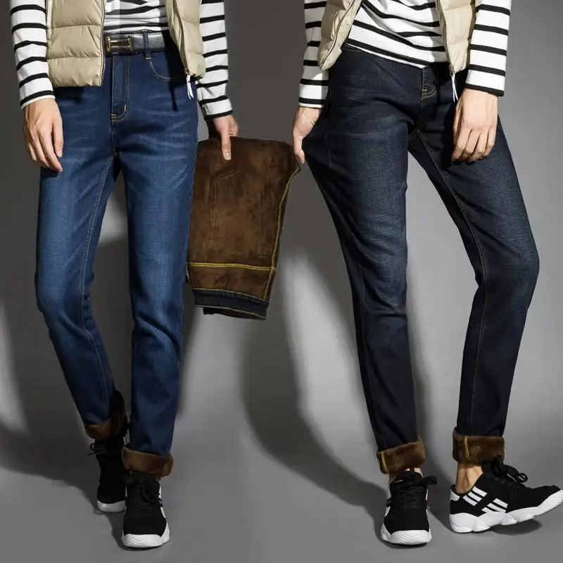 Джинсы мужские, черные, зимние, теплые, тянущиеся, плотные, 2021