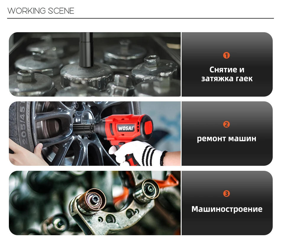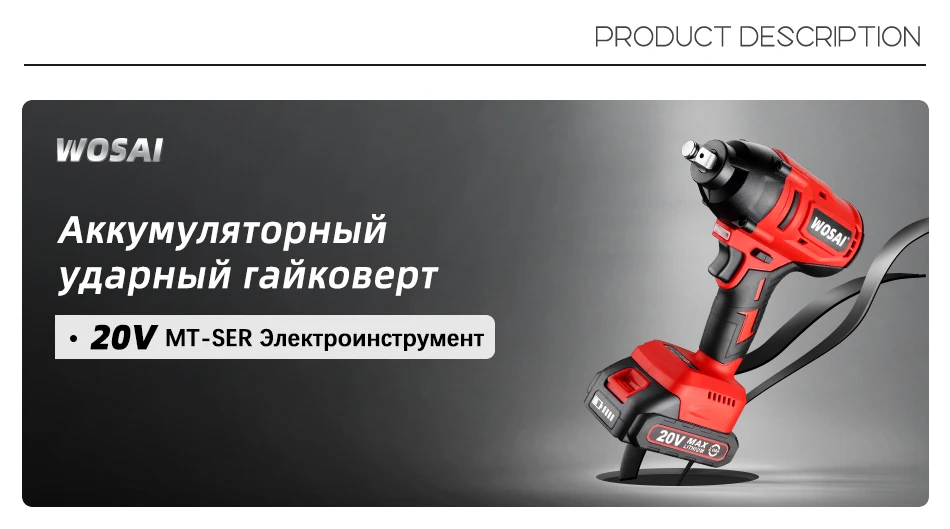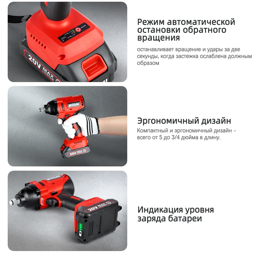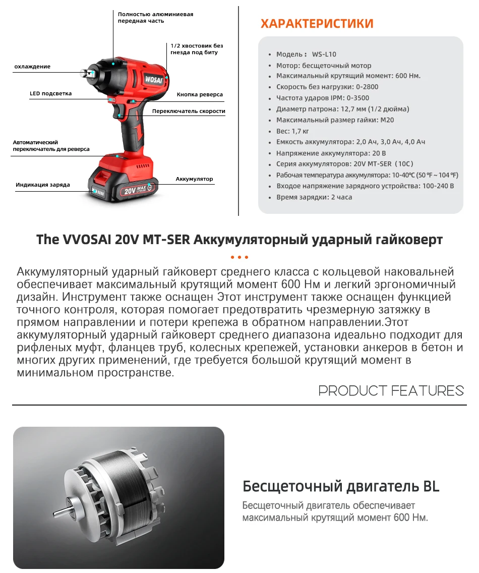 Гайковерт WOSAI ударный, 20 в, 600 Н м, с бесколлекторным мотором