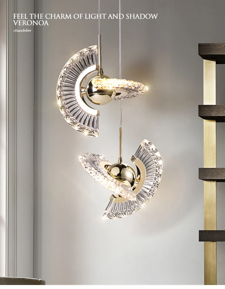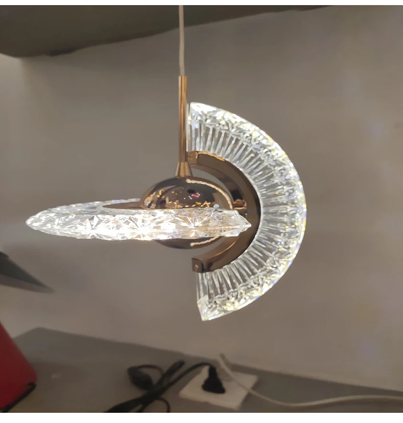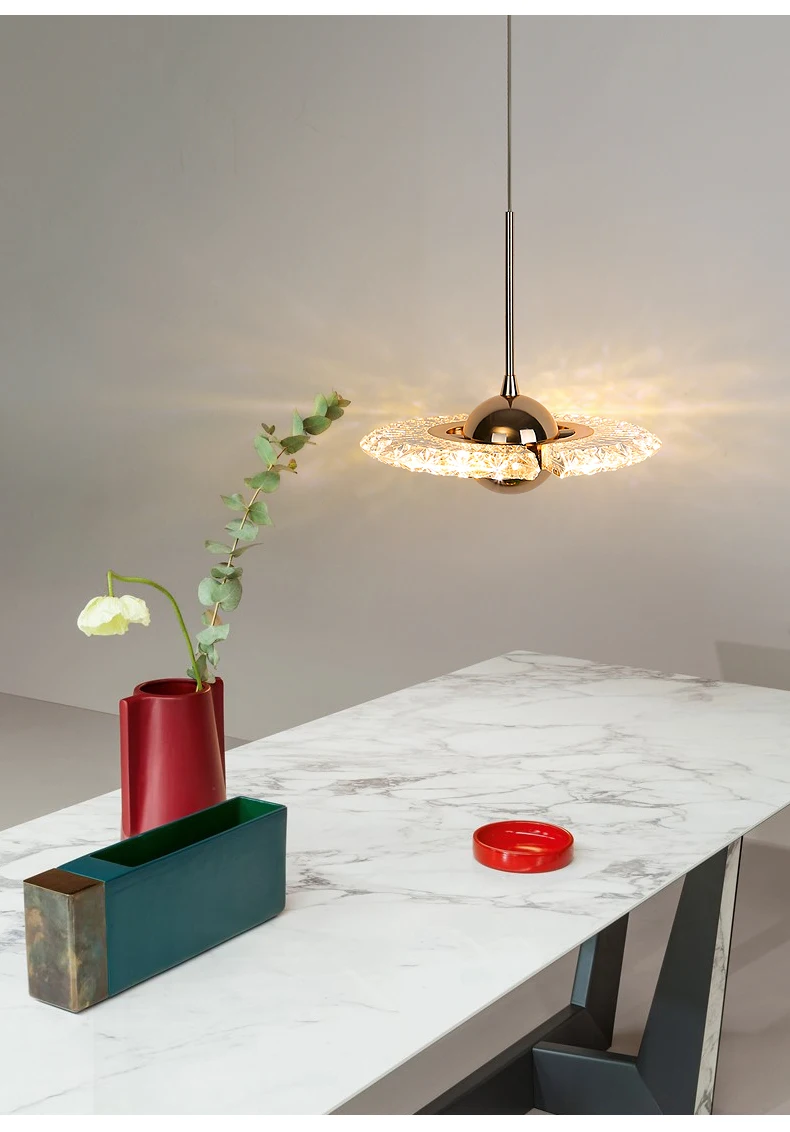 Маленькая Хрустальная люстра MZM в скандинавском стиле, креативный подвесной светильник с летающей тарелкой для спальни, ресторана, дивана, вращающееся освещение в помещении