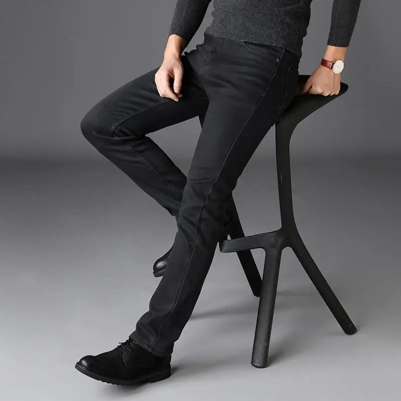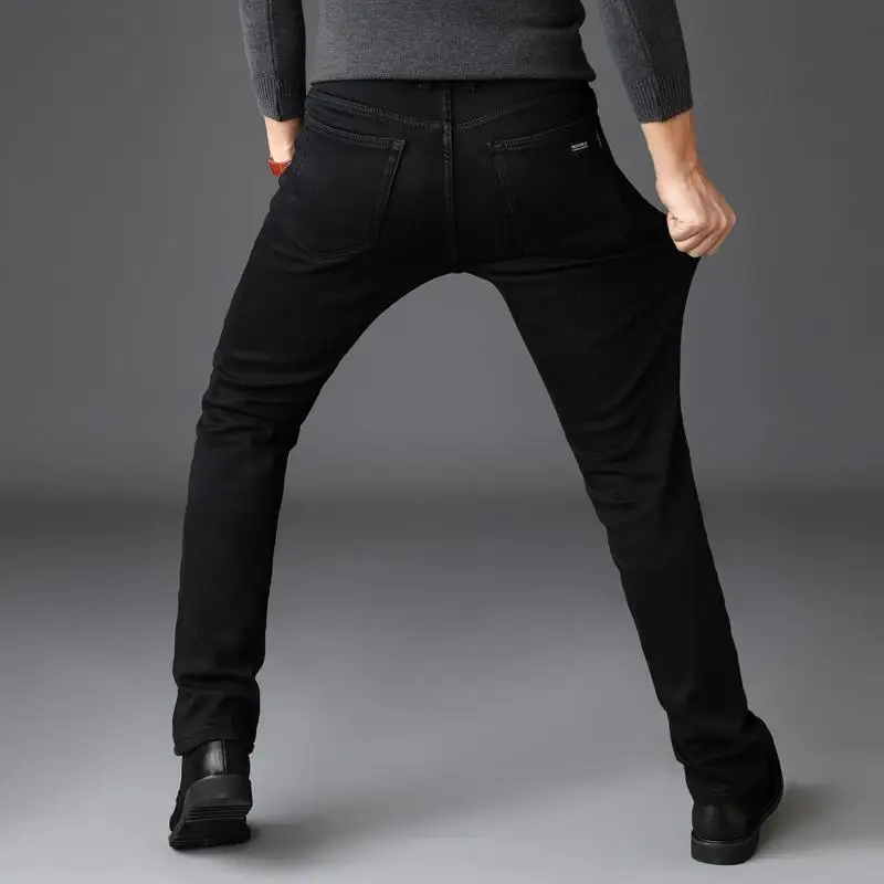 Мужские черные джинсы стрейч, классические деловые модные облегающи...